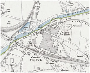 1876: Lands and house of Parkhouse acquired on long lease from Mrs Gunn, per Patrick Rankine, for a new foundry.   The company consisted of William Mitchell (late of the Burnbank Foundry Co), William Graham (several years representative to Messrs Cameron and Robertson of Kirkintilloch), and William Hosie (patternmaker).  First cast on 3rd June.  Blast provided by a No. 4 Root’s patent rotary blower driven by a horizontal high pressure 14 inch cylinder by Macuie & Baird of Stirling.