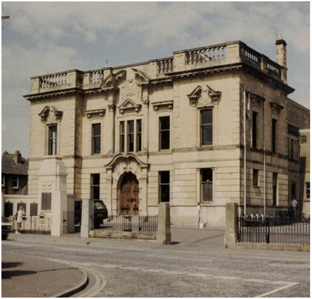 The Dobbie Hall was designed by A and W Black of Falkirk in baroque style and built by J. J. and P McLachlan of Stenhousemuir, at a cost of about £12,000. The first concert to take place within the hall on the opening night, was for the benefit of the wives of the soldiers in the war in Africa. The Larbert Carnegie Public Library, also designed by A & W Black, was erected on part of the ground given by Robert Dobbie for the hall. It was opened by Dr William Jacks, former MP for Stirling County, on the 27th October 1904. The War Memorial by George Washington Browne, was erected in front of the hall and the unveiling and dedication took place on the afternoon of Sunday 24th September 1922.