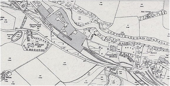 In April 1877 Carrongrove Paper Works were sold, along with Randolph-hill House, for the upset price of £25,000, the purchaser being T J Finlay (Falkirk Herald 3 May 1877). A new company, the Carrongrove Paper Company Ltd, was formed to operate the mill and James Johnston was appointed as the manager. Johnston had been the manager of James Brown’s Esk Mills in Penicuik. Under his supervision, production and profits increased. Johnston was a partner in the company and worked hard to ensure its success. To maximise the use of the water power and the equipment, three shifts were worked. Johnston lived in Randolphill, just up the hill from the mill and developed a routine of visiting the mill around midnight. On one such occasion, on 20 June 1885, he evidently stumbled on his return journey and was drowned in the lade.