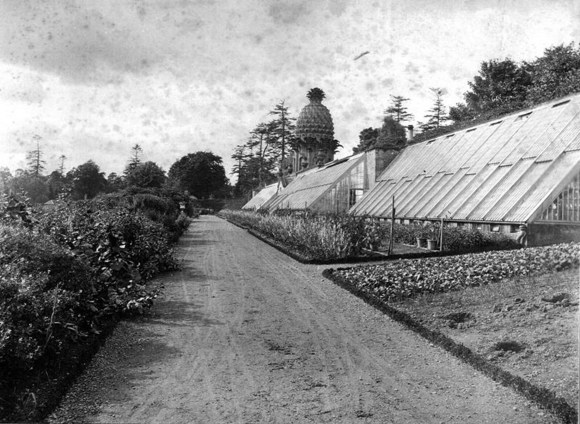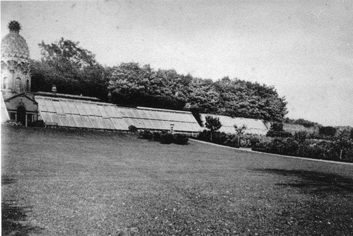 The greenhouses had to be maintained and kept up to date. The latest fenestration covered almost the entire south façade of the north wall to either side of the central pavilion and so the windows in the gardener’s quarters were blocked up. With the increased availability of plate glass and its lower price additional greenhouses were added to either side.