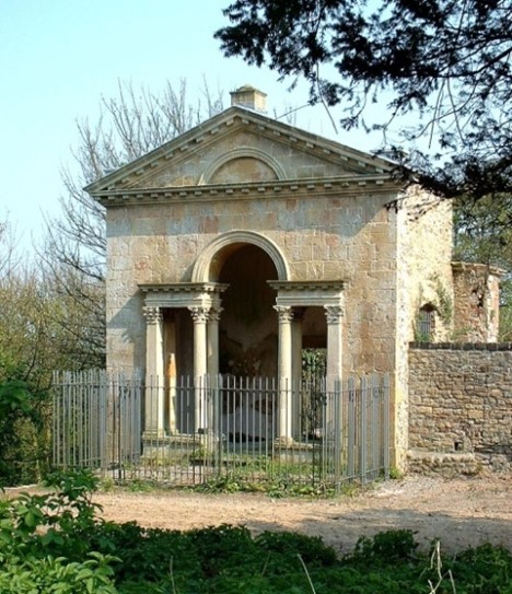 “…about 40 feet high and very curiously wrought in hewn stone, the leaves curving and hanging over very naturally. The space within it is octagonal and has an arched window in each square. Adjoining on each side are extensive greenhouses adorned by several huge stone vases of different forms, ornamented with festoon” (Mouat 1755), quoted in NTS 1992, 2).