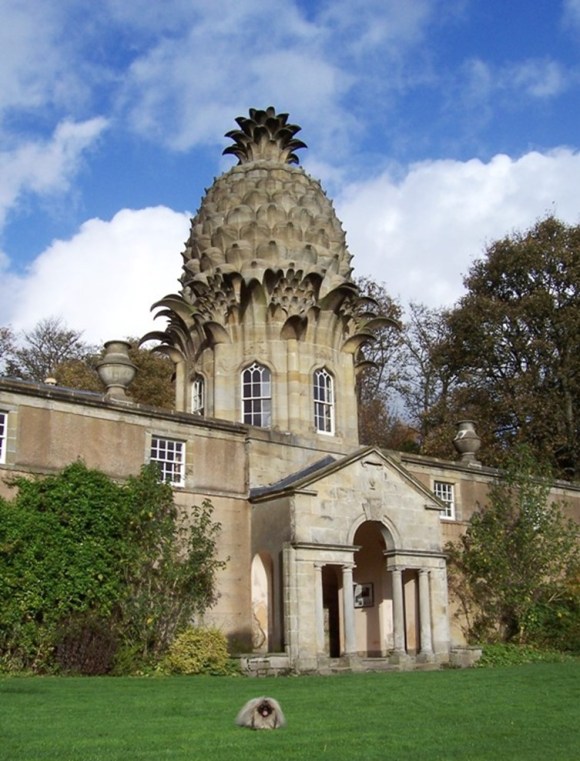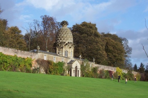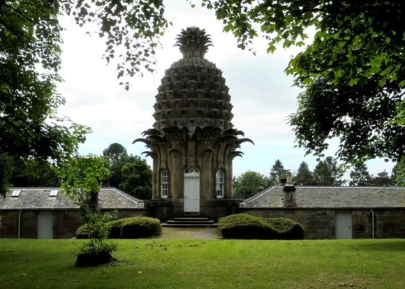“On Dunmore estate the ‘Pineapple’ was built by an Earl of Dunmore on his return from holding the governorship of Jamaica; the building, shaped like a pineapple, was designed by an Italian.”