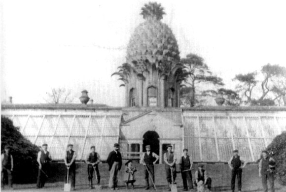 In 1775 Thomas Mouat had journeyed from the Shetlands to London to acquire furniture for the house that he was building. On the way he visited gardens and houses in the Edinburgh area in search of ideas. Fortunately, these included Dunmore and he provides us with the only early description of the Pineapple: