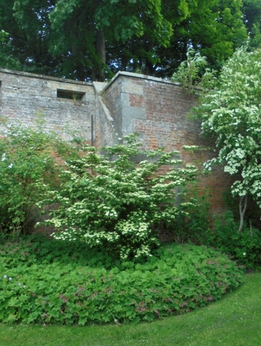 Some of the solid stone urns were still in the garden in the 1960s but were removed to other properties. They appear distantly in the photographs of the walled garden taken in 1917, which also show that there was a path running east-west across the garden, flanked on each side by herbaceous planting.