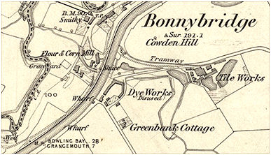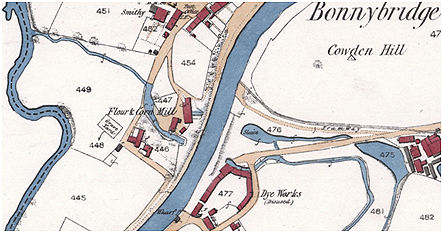 The construction of the canal interrupted the road system from Bonnybridge to the south and all of the traffic had to use the pend adjacent to the mill. This was impassable to vehicular traffic whenever the stream was in flood. Indeed, it was only in 1885 that the footpath along its eastern side was raised. It was 1900 before a bascule bridge was placed over the canal and the road beside the mill became Bridge Street.