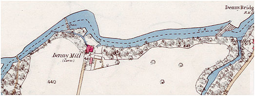 Denny Mill stood on the south side of the River Carron almost opposite to Herbertshire Castle. As such it lay just upstream from the early fording point of the river and only a little further away from Denny Bridge. A weir across the river was securely anchored on the rocky bed and sides of the river and the lead had to be partly cut through this material.