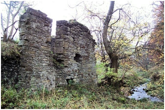 The 1793 Statistical Account for the parish notes that the loch supplied a corn mill with water. Its remote location meant that trade was slack and it closed in the early 19th century. Around 1825 a distillery was erected on the site. The buildings were quite substantial and consisted of two and one storeys ranged around a large courtyard. It is said that the water from the loch was not conducive to the production of good whisky – though this may have been to do with them being muddied by mining operations. In any case, the distillery was short-lived and the buildings were converted into a brewery. This fared little better and machinery was inserted to allow it to function as a flax mill. A flax kiln can still be seen to the east of the buildings. Sometime around 1853 the buildings were converted for use as a corn and barley mill with lofts and granaries (Falkirk Herald 24 February 1853). The Carron Company acquired the site for the underlying minerals and the buildings seem not to have been used for milling.