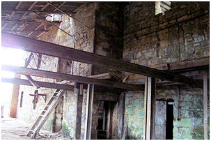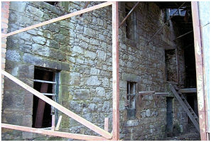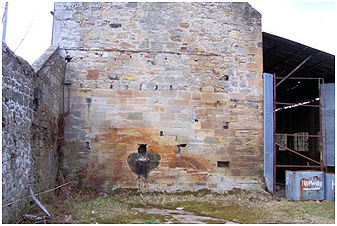 In 1823 it was decided to rebuild Larbert Mill and John Hamilton, the overseer for Callendar Estate, was tasked with getting the work done. The first job was to remove the sitting tenant, John Russell, who was too impoverished to pay his rent but had nowhere to go and refused to resign his lease which still had two years to run (Forbes Papers 1123/25). An inspection in September that year of the mill, kiln and house showed that they were “all in a very ruinous state and would all require to be thoroughly renewed at his removal” (ibid 1124/23). The Road Trustees were consulted and it was agreed to raise the level of the road using the new building as a retaining wall. A cast iron trough was to be used to carry the water under the road from the pond to the water wheel. (It appears that the Road Trustees used their powers to get the road widened and this was done by running it over vaulted rooms attached to the new mill.) In March 1824 James Hardie of Falkirk produced an estimate for a two storey building of stone with a slate roof.