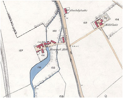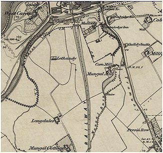 Immediately to the west of the mill buildings were those of the farm of the same name. To the east, on the other side of Carron Road, was Mill Flatts.