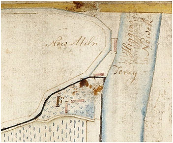 The estate of Newmills took in the fields to the west of the mill bounded by a crook of the Pow. It is not known if the terminal “s” indicated that there was more than one mill here at the time or was merely a possessive meaning the Lands belonging to the New Mill.