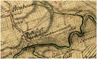 The mill is mentioned again in 1601. Infamously, the amazing Roman monument known as Arthur’s O’on was demolished by Sir Michael Bruce in 1743 so that its stones could be used to repair the dam across the River Carron. John Melvin “a mulcherer and merechant” held a tack of the mill in the 1750s and brought shipments of grain up the River Carron for storage in the mill buildings. It was said that the granaries and lofts of Stenhouse Mill could hold over 300 bolls of oats and 300 bolls of wheat. Peat was also delivered by water for use at the mill.