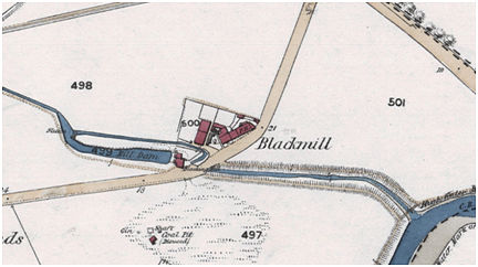 The blacking mill is depicted on the 1859 Ordnance Survey map with a group of buildings to its north which included a public house. The accompanying Name Book describes it as:
