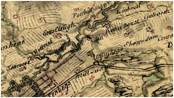 The origin of Bonny Bank Mill is uncertain. It stood on the south bank of the Bonny Water a little to the west of Bonnybridge; the long lade started near Seamores Farm. The mill appears on Roy’s Great map but not his plan of the Antonine Wall which suggests an origin for the mill in the 1750s, similar to the Ford Mill. It is also depicted on Grassom’s map of 1817.