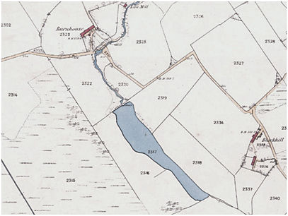 This lint mill was established between 1755 and 1817. It appears on Roy’s map and Grassom’s map, 770m south of Allandale. At the time the government was encouraging the industry. The large pond to the south may have been used for steeping the fibres. In 1836 David Spiers is recorded as the proprietor, and it was still worked by John Spiers in the 1850s. In 1858 the Ordnance Survey described Burnhouse as