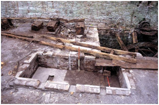 As the timber on the Carriden estate matured it was decided to construct a water-powered sawmill onto the west side of the stable block. The location was chosen for the ease with which water could be supplied from a dam constructed across the Muirhouses burn and the lade closely followed a Roman predecessor which led to a bathhouse for the adjacent Roman fort. Remains of that bathhouse were encountered during the original excavation of the wheel pit in the 1850s.