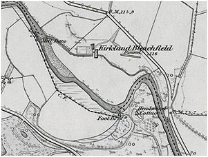 The mill appears more clearly on Grassom’s map of 1817, though it is still not named. By the time of the first edition Ordnance Survey map of 1861 the area was occupied by the buildings of the Kirkwood Bleachfield, which was disused.