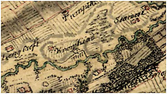 An estate map of 1770 (RHP 704) shows an unroofed rectangular structure annotated “Formerly a Lint Mill but taken away”. It stood at NS 806 793 in an area with no obvious water course. It appears that at the time the River Bonny ran in a large loop to the north and that a lade was cut across the bend to serve the mill – it may have been this that led to the eventual cutting off of the loop with the lade becoming the course of the river. Around 1755 General Roy depicts it on his survey.