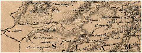 This “lint mill” is shown on the map of Slamannan Parish in 1806, and on Grassom’s map of 1817. It is not named on either and so the appellation given here is assumed. It lay on the west side of the Rashiehill Burn close to the large farm of Rashiehill owned by the Waddell family. However, it may have been on the farm of Blackrigs.
