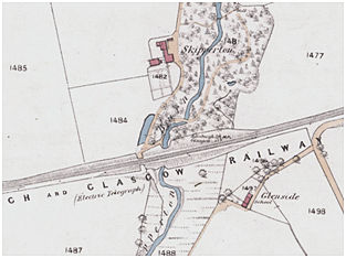 In 1793 there is a reference to “part of Skipperton at the Tronach Burn, with the Lintmiln thereon” (Reid 2005, 38). This, however, may be a reference to the mill at Burnhouse and it is notable that whilst Burnhouse Mill is shown on Grassom’s map of 1817, Skipperton is not.