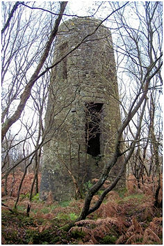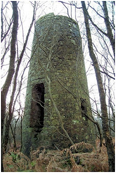 As the distilleries closed the trade from Dunmore Moss declined and by the time that the first edition Ordnance Survey map was surveyed in 1860 the windmill was disused.  Moss extraction began again at the beginning of the 20th century, but after just over a decade finally came to an end.  Ironically part of the reason for that was that in the summer months the moss dried out and ash from passing steam engines on the Alloa Railway set the peat on fire every few years.  Today the windmill is gutted and capless but the walls are in pretty good order.  The once open moss is now populated by innumerable saplings.