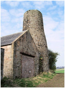 The windmill at Myrehead, built at such great an expense, was effectively redundant.  The 1863 Ordnance Survey map shows that the sails had been removed, and a furnace inserted up one side of the tower converted it into an engine house.  This was more versatile and could also be used for winnowing – replacing the horse gin shown on the south side of the complex.  It could also be used for drying the grain.
