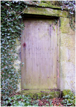 Illus: The south-east corner with the Door.  The Pediment can be made out under the ivy.