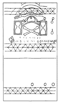 3. The east wall also contains two gravestones, one of which is so badly weathered as to be unreadable.