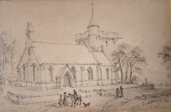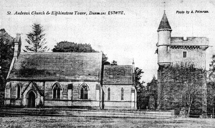 St Andrew’s Episcopal Chapel on the Dunmore estate was built and endowed at the sole cost of the Right Honourable the Countess of Dunmore and was essentially a private church. The remains of the west wing attached to Dunmore Tower were levelled and the site was terraced to create a raised platform for the new building. Here it had commanding and extensive views of the Forth, but was sheltered to the north and west by a cluster of trees.