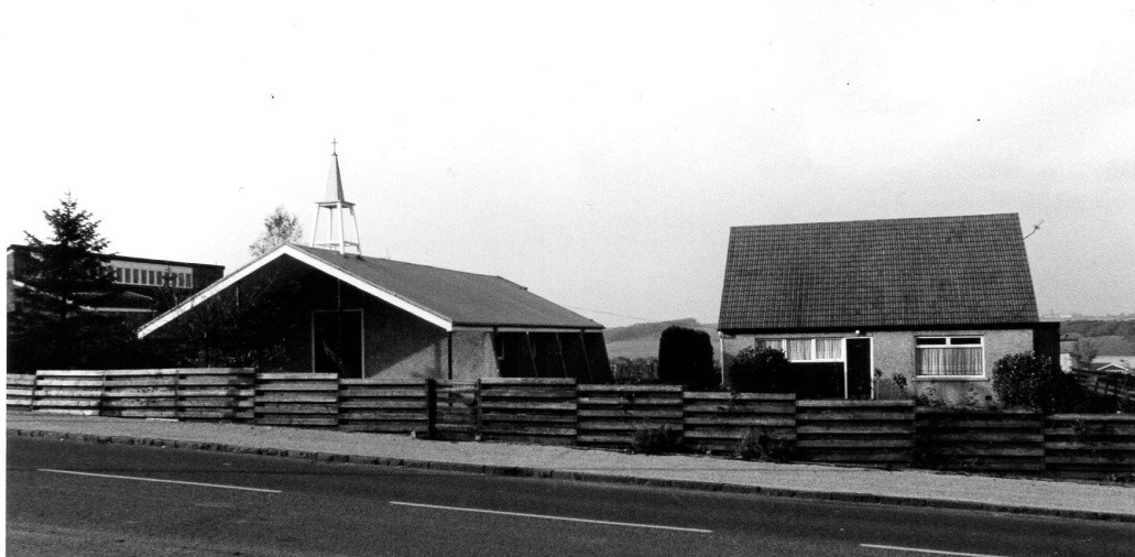 1959-1960: New church built in Bank Street, it is a low structure with white rendered walls carrying angled buttresses to support a low-pitched felted roof. The south gable fronts Bank Street and contains the double-door entrance over which was a simple belfry. Cost £4,600.