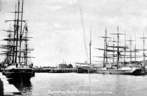 The main contractor for the dock, Thomas S Hunter, died in February 1880, and the work was continued by his trustee. The resident engineer was F Jopling and the contractor’s engineer was J L Houston. The dock was opened on 3 December 1881, providing 2,400ft of quayage.