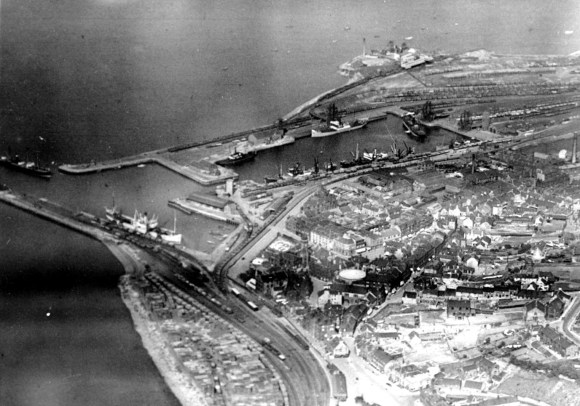 Trade was already slowing down when the Second World War began. Preparations for hostilities had been going on for some time and a large concrete air raid shelter, capable of holding far more than the 50-60 men likely to be in the area, was completed at the eastern coal hoists just weeks before war broke out. Once again the Government closed the dock to commercial traffic for the duration of the war. This time, however, it was given an important wartime role and became the home of HMS Stopford – a base used to train the crews of landing craft for the invasion of France. It was also used for fitting out the motor torpedo boats fabricated nearby at Bridgeness (Bailey 2013). The rights of way into and through the dock were closed under the Emergency Powers Act.