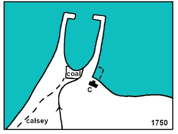 The earliest facility here was a simple causeway, the remains of which according to Salmon were discovered when enlargements and improvements at the harbour were made in the 19th century (ibid, 22).