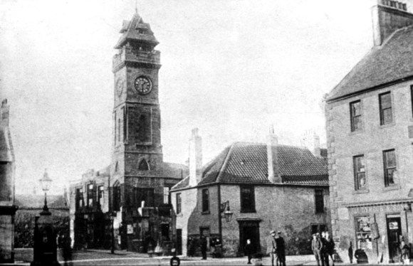 At the same time Bo’ness appears to have become independent of the customs house at Blackness. More building took place. The Vennel to the west of Dymock’s Building eventually became Scotland’s Close and opposite that building was a house built in 1711 – the inscription “17 MG MR 11” appearing on the door lintel. It became the West Pier Tavern, serving the sailors coming off the ships (now Bo’ness Library).