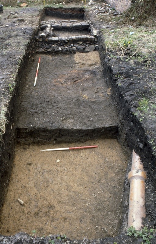 The medieval settlement had been located on the top of the Hill of Airth, a little to the north of the castle for security. It was here that the warehouses were located and to which the goods had to be carried. By the mid-17th century conditions were peaceful enough to allow a drift of the population down to the landing place and this was formalised in 1697 by the erection of a new mercat cross there in the centre of a market place. On the north side of this square a two-storey house was erected shortly after 1700 and remained until the 1970s when it was demolished. It was to be over twenty years before this central site was built upon and in 1989 the author conducted an archaeological dig there. Almost immediately behind the house, just 35 yards from the mercat cross, the edge of the warping was encountered. This had been the coastline in the medieval period.