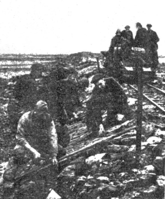 Illus: The Preliminary Bank with the Light Railway and carefully prepared pitched face.