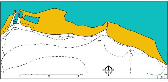 The dotted line represents the probable Roman coastline.