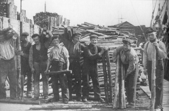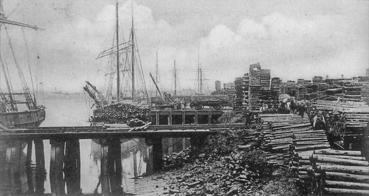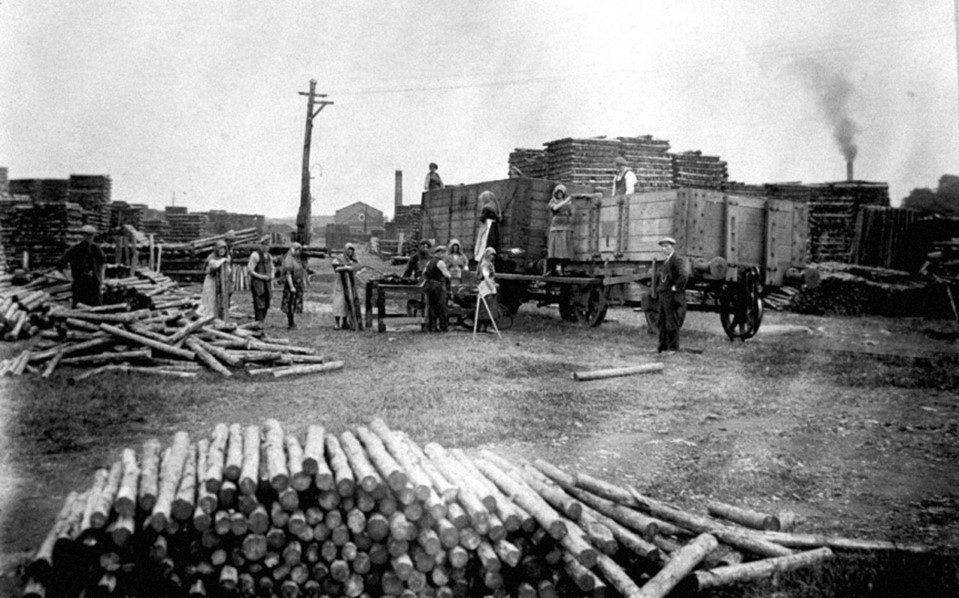 From the turn of the century almost until the Second World War there was always a large body of men, women, and young people at work during the shipping season stacking the props as they arrived, and moving from yard to yard as each importer in turn got his cargoes home.