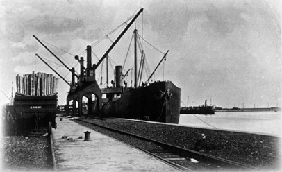 The exports of coal went to much the same places as the imported wood came from, including Germany. For many years Slamannan steam coal was taken by rail to Bo’ness and then exported for the use of the German railways. After that market closed it was used by the Danish State railway. The pitwood firms usually hired shipbrokers and shipping agencies to arrange the transport and these businesses thrived in Bo’ness, Grangemouth and South Alloa. The bigger pitwood importers, like Love & Stewart, set up their own import and export branches. In due course that company also added ship-owning, setting up a subsidiary company called “The Lovart Steamship Co Ltd.”