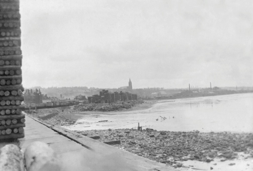 Bo’ness possessed many advantages peculiarly adapted to the pitwood trade. There was considerable storage space, the railway facilities were good, and the communication was direct to most of the great mineral fields in the country. The storage space was created by reclaiming land from the Forth using pit waste. This flat land could not be used for agriculture or heavy industry, but was ideal for woodyards. One drawback was noted in 1876 when part of the land occupied by John Denholm & Co was swept away in a violent storm. No timber was lost from the yard on that occasion because it was moved inland in anticipation, though timber left on the quay was washed away.