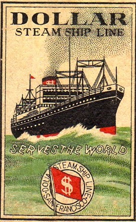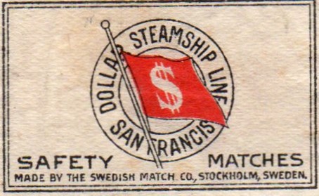 He started in shipping to move his lumber and moved to carrying freight around the Pacific. Later he moved into passenger traffic. His ships were under the name of the Dollar Steamship Company, had a big “D” on their funnels, and issued several matchboxes featuring their vessels.