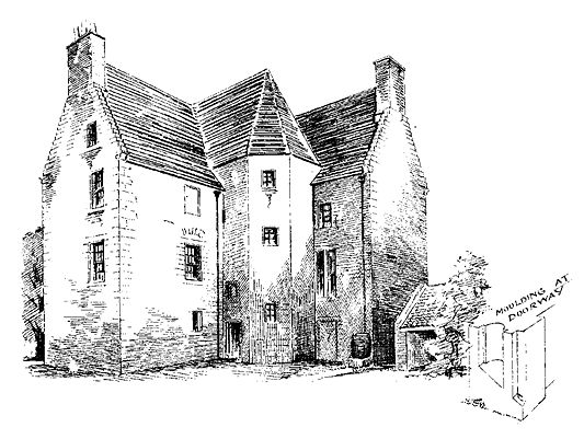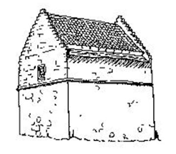 The steeply pitched roofs ending in crow-stepped gables allowed for a spacious attic floor. The water supply was from a draw well about 18 feet deep, 50 yards down the hill to the south of the house.