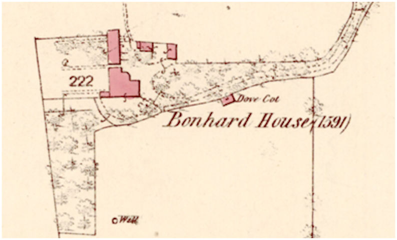 The family had business concerns in the Royal Burgh of Linlithgow and Peter Cornwall built a comfortable townhouse there in 1529. His son, Nicholas, was made provost of Linlithgow in 1592 and sat in Parliament as its representative from that year till 1599. It appears to have been Nicholas who built the stone mansion at Bonhard in the 1580s. It is a typical L-plan dwelling of that period designed for comfortable living rather than for defence. It was only in the late 19th century that references appear referring to it as “Bonhard Castle.”