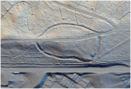 Illus 1: Lidar Image of Callendar Wood Hill Fort processed by Bruce Harvey. Hallglen lies to the south.