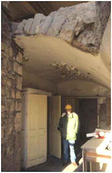 Illus 17: Stone Vault of Room G13 taken from the later bay window with the Conference Room (F110) above.