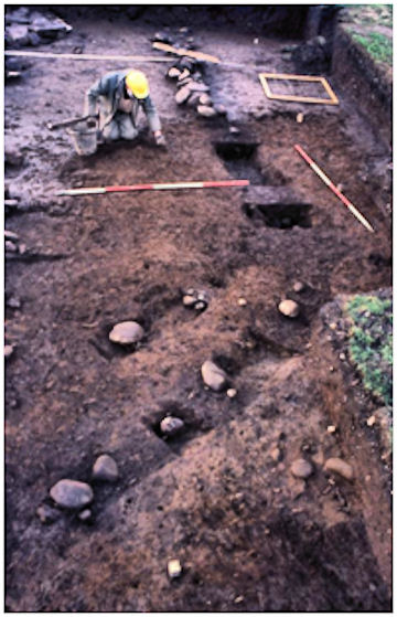 Illus 2: Archaeological Excavation at the Timber Hall on Palace Hill in 1990 showing the foundation trenches.