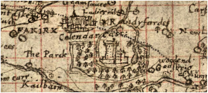 “The House of Calander is a Noble Seat, with fine Buildings added to the Castle of Calander… The Calander has a large Wood adjacent to it, with Walks cut through it, and Fish Ponds near the House, and Gardens, and large Inclosures to the East and West.”