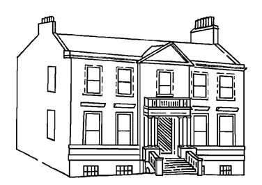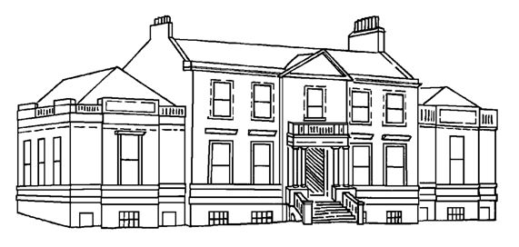 The House faced east and this façade was of polished ashlar two storeys high with a half sunken basement. It had five bays arranged symmetrically with the central one slightly advanced and given a triangular pediment. The main door occupied this central bay, covered by a balustraded porch on four Ionic columns reached by a flight of stairs. The ground floor windows had moulded margins and hoods, whilst those above had backset margins. A broad plinth course between the basement and the ground floor provided a base and a moulded eaves course and low parapet a cap