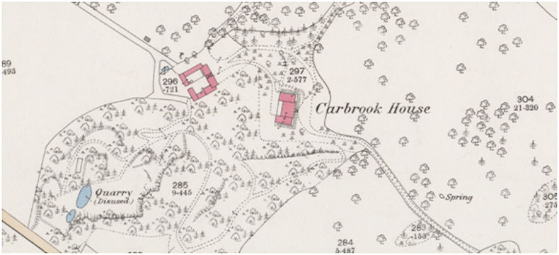 John Campbell was the eldest son of John Campbell, the Collector of Excise for Inverness. In 1784 he had helped to found the Stirling Merchant Bank Company which dealt mainly with graziers and agriculturalists. He received a charter for Carbrook on 19 December 1801 and shortly thereafter erected a substantial mansion on the lands. The stone presumably came from the large quarry immediately to the south of the house. This quarry had probably been in use for some time previously.