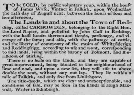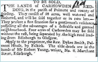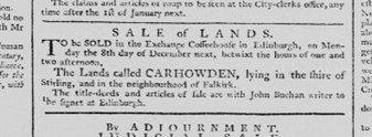 The Lands of Carhowden were for sale again in 1777.