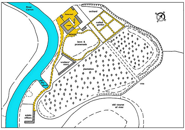 Carron House was a grand house by any standards, but it was not the only large house on the estate. Other houses existed at Gairdoch and Abbotshaugh and so it is not surprising that in 1785 Ogilvie put Carron House and its self-contained grounds on the north side of the river up for sale: